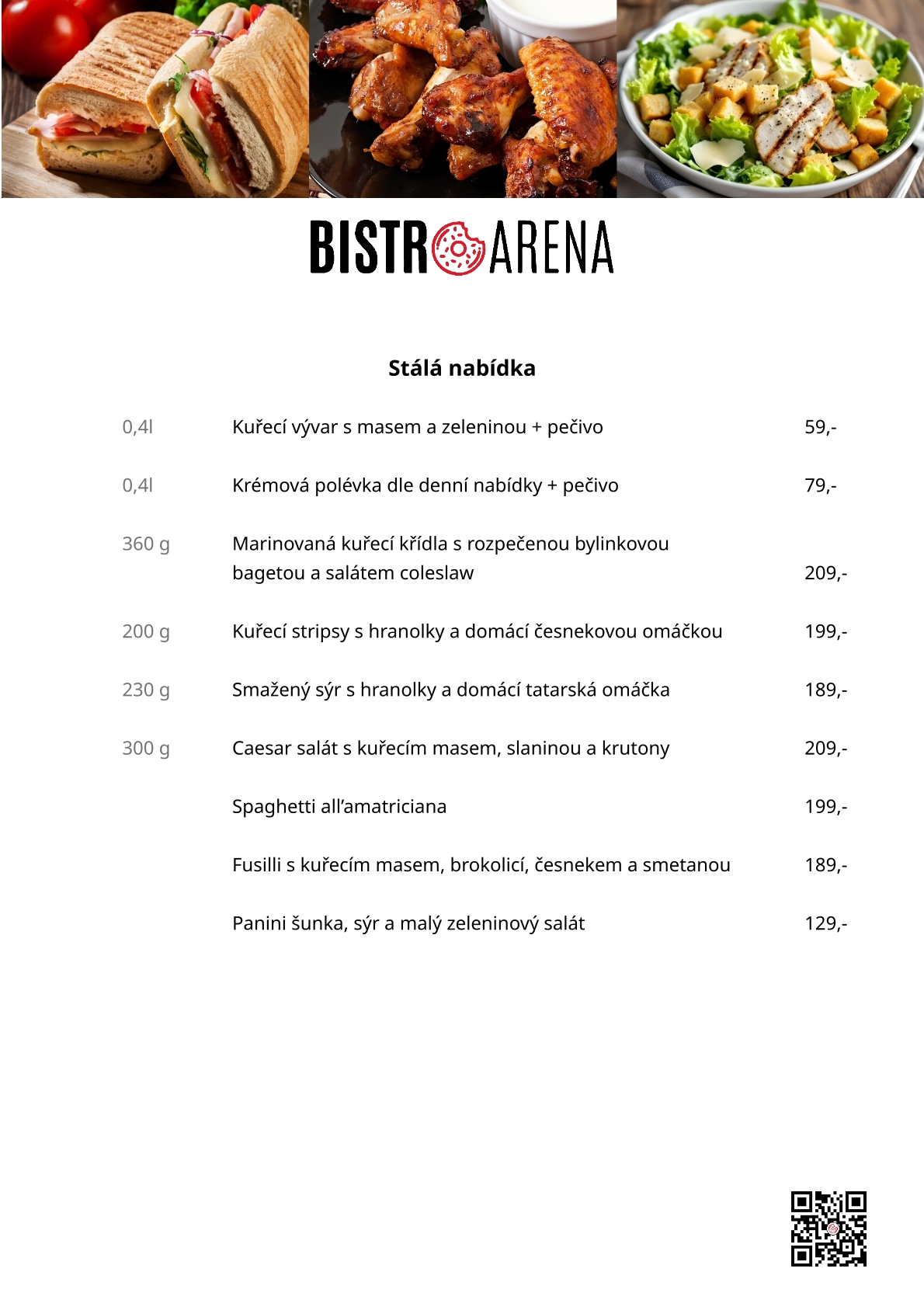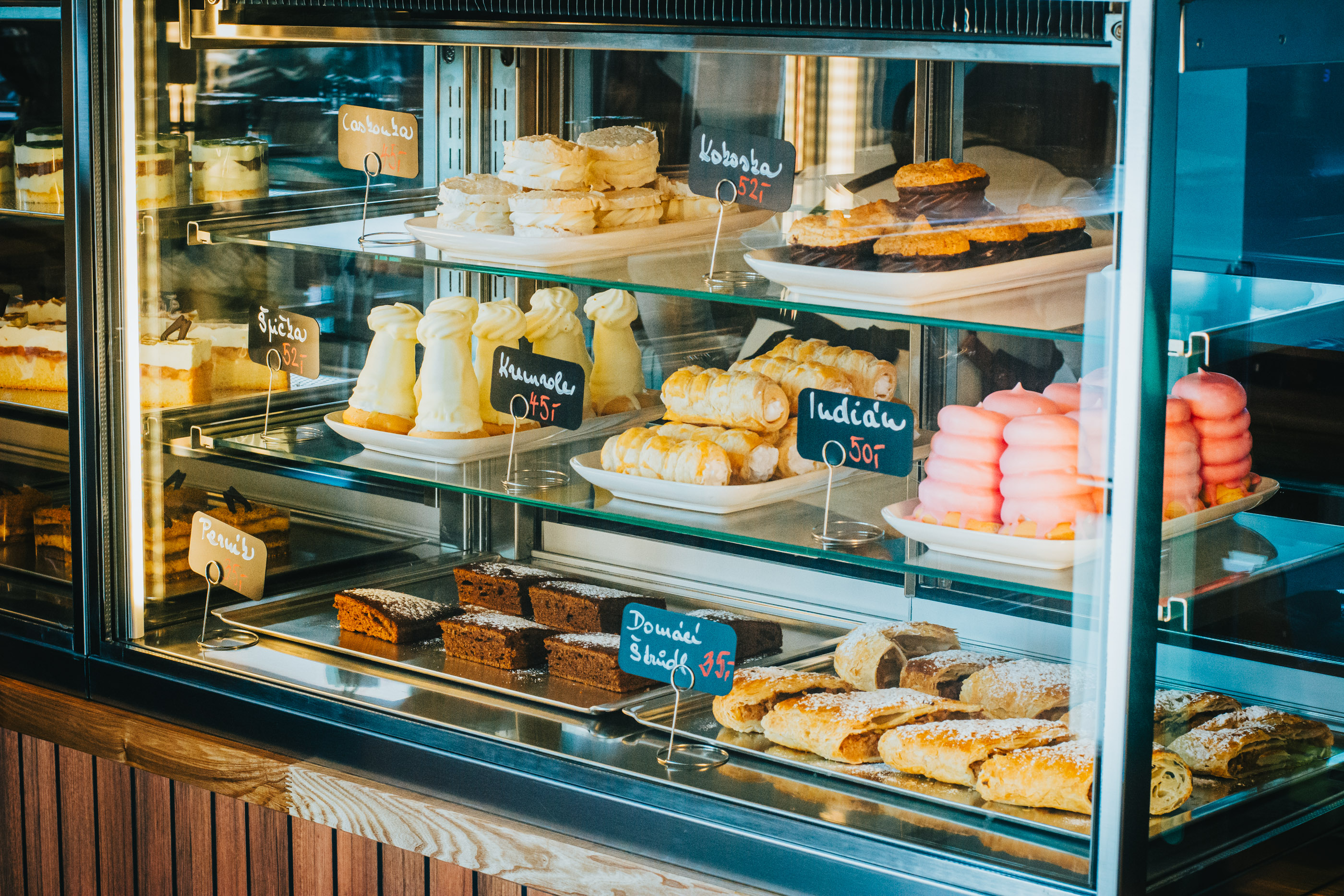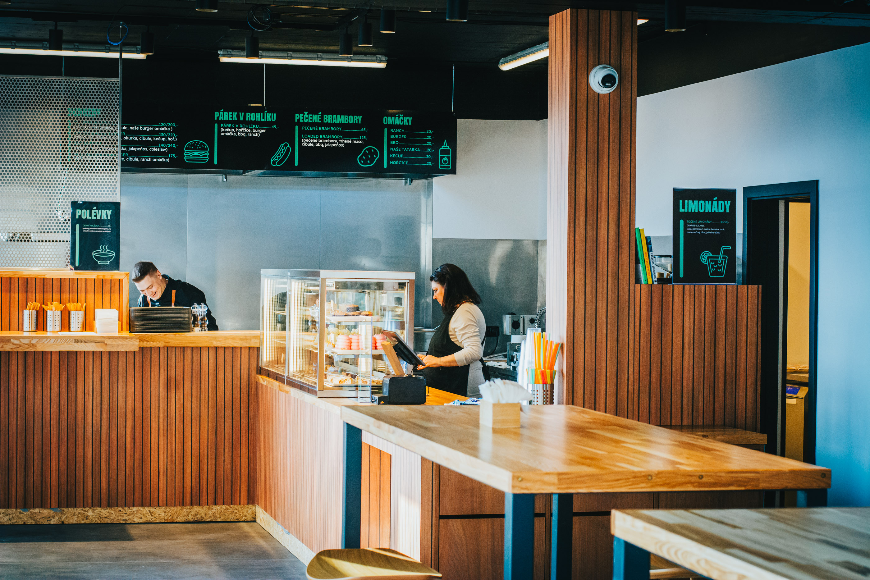 Připravujeme šťavnaté burgery, pečené brambory, čerstvé sendviče a denní polévku, kterou několikrát do týdne obměňujeme, aby bylo vždy z čeho vybírat. Ke kávě si můžete dopřát také výborné zákusky a dorty, které potěší každého milovníka sladkého.