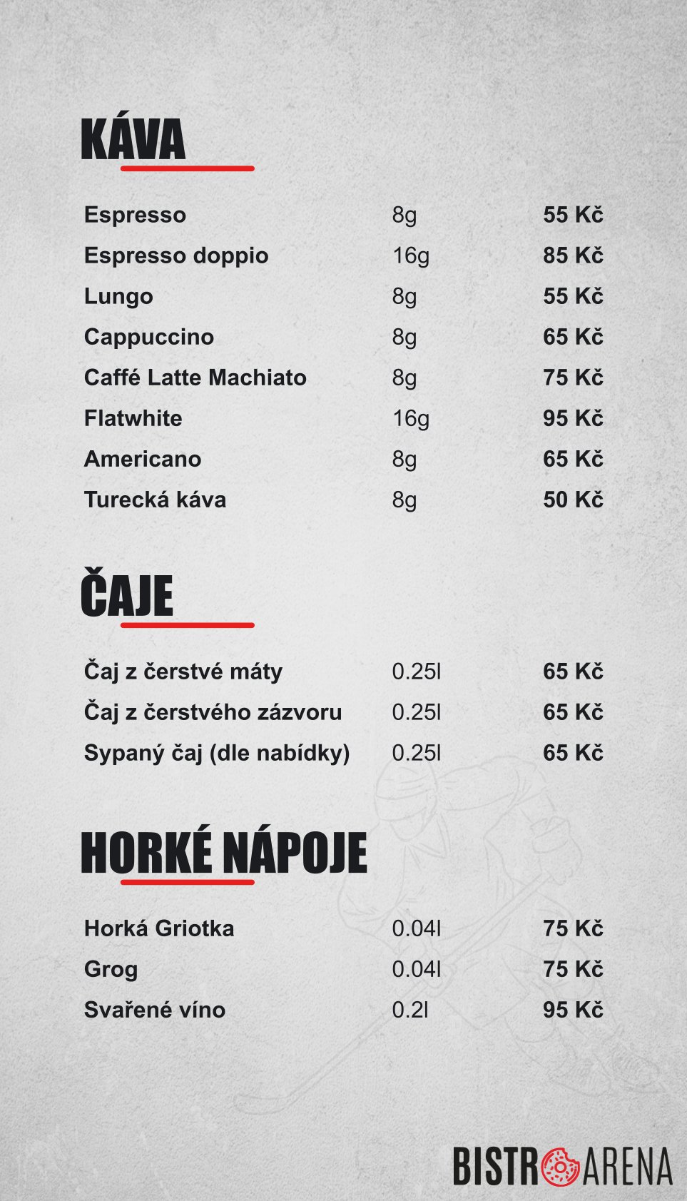 Nabízeme občerstvení a široký výběr drinků dle jídelního a nápojového lístku, který naleznete ZDE